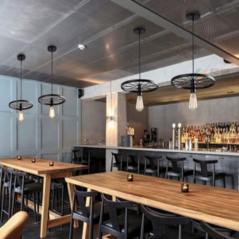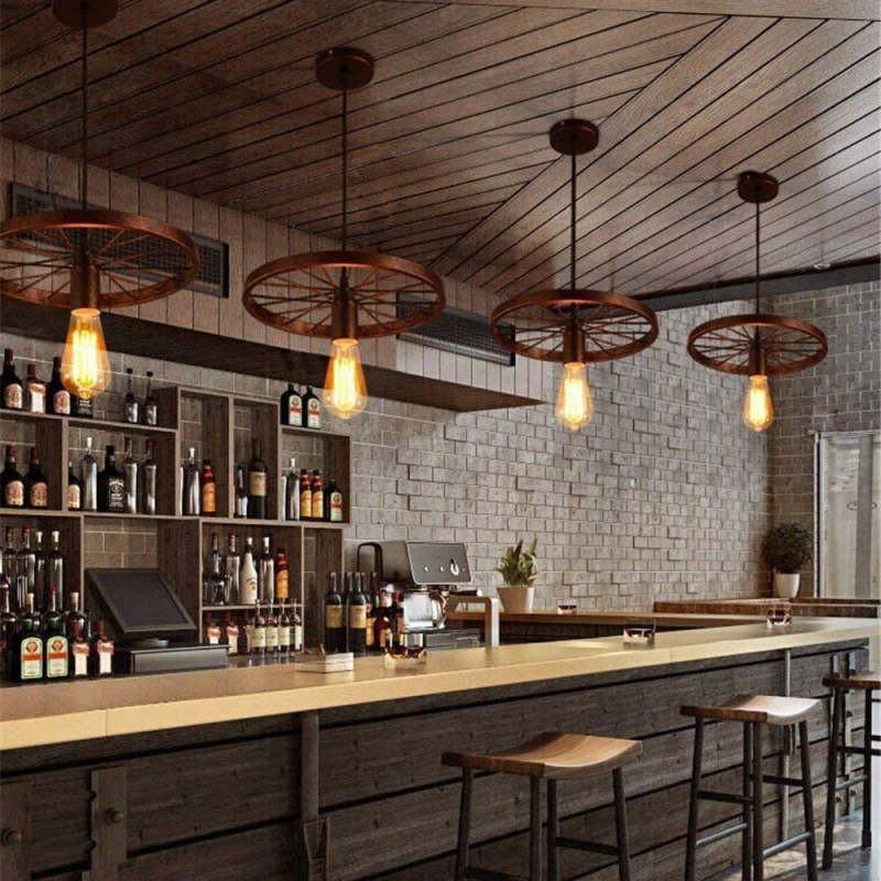 Luminaire Suspendu Rond Vintage, Noir/Rouille